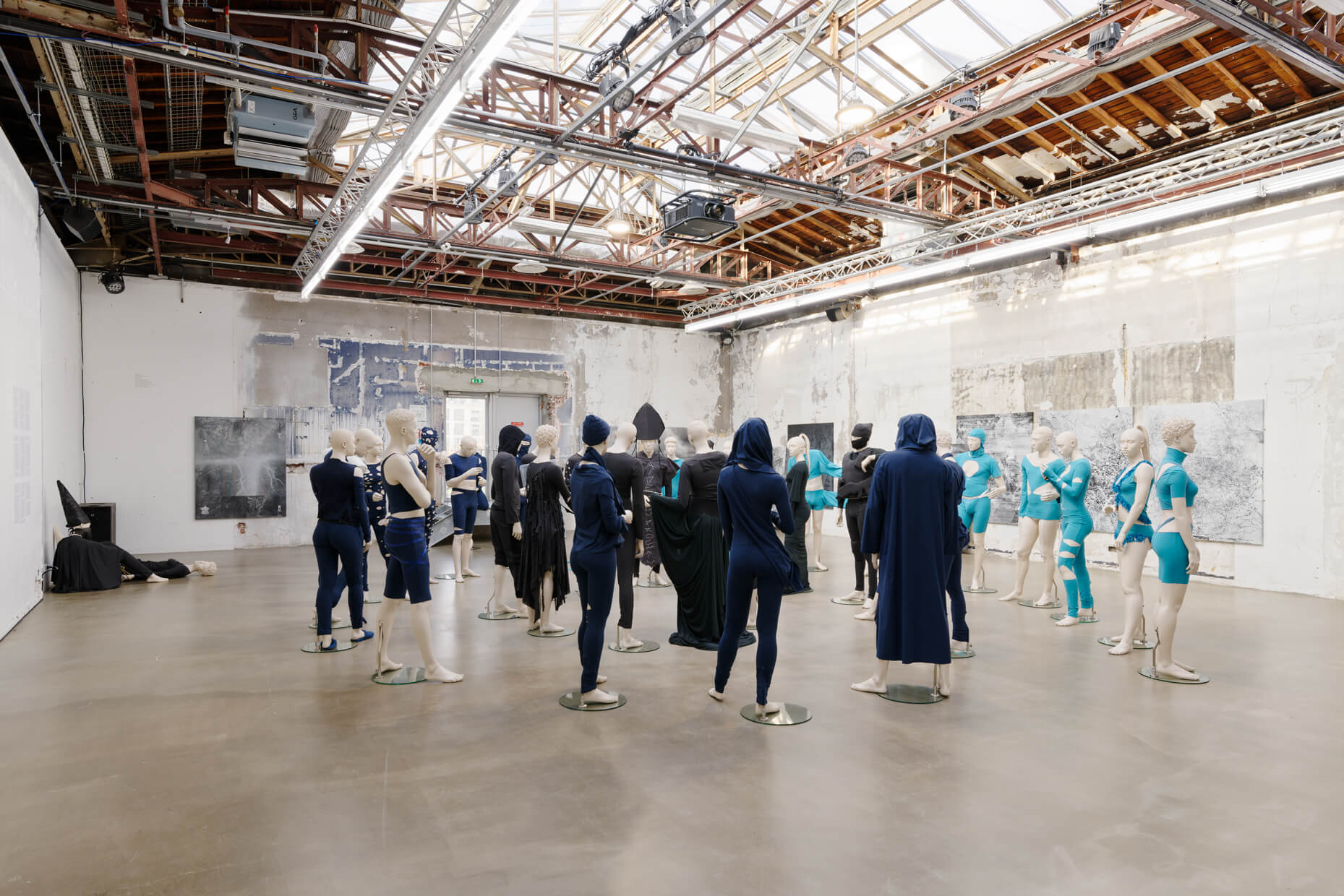 In his 1960 text Masse et puissance, writer Elias Canetti suggests that it is the “discharge” that truly constitutes the mass. Without it, the mass does not exist as such. “It is the moment when all those who make it up cast aside their differences and feel equal”, suddenly forming a community in a world structured by distance and by borders. “In the moment of discharge, they reject that which separates them.” When in motion, the crowd becomes pyrotechnical. Thermal imagery shows it heating up: the crowd sees red, a mirage of hell or of delights. In a society that is at once strictly controlled and highly atomized, Foudre Sentimentale explores the actual libidinal fantasy of the crowd, of airborne clouds of sentiment and teargas-fogged embraces. The exhibition proposes a confrontation between the bodies of the public with those of forty models who have temporarily become the creative means for students of Casa 93 fashion school. Like a vortex, these multiple and static bodies are placed in a spiral, allowing viewers to place themselves within the crowd or facing it. The textile creations of the students investigate the notion of the uniform and its ability to constitute an at times anonymous community, as well as the fantasies that are linked to particular accessories and appearances that lead to racial profiling by the police. These creations are placed in dialogue with paintings, photographs, films, archives, poems, as well as music and dance performances.