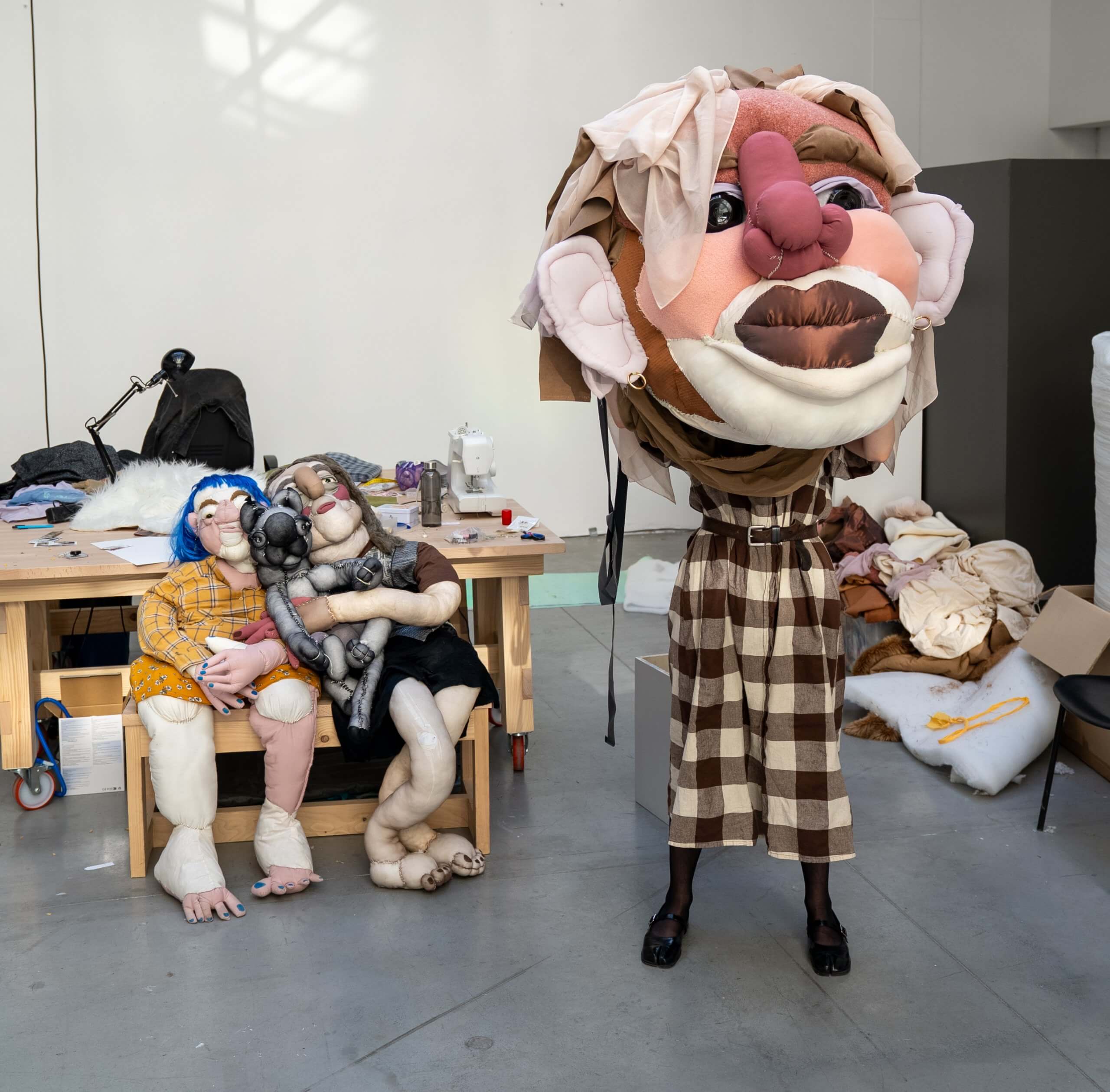 Mathilde Nourrisson confectionne quant à elle des marionnettes, à première vue étranges, solitaires, dont la réalité ne correspond en fait pas aux attentes productivistes de notre société. A travers ses mises en scène, ses personnages nous encouragent à trouver d’autres voies d’accomplissement que celle de la réussite à tout prix. Elle a confectionné à la Friche une marionnette géante inédite et le journal intime de ses aventures au Palais de Tokyo.