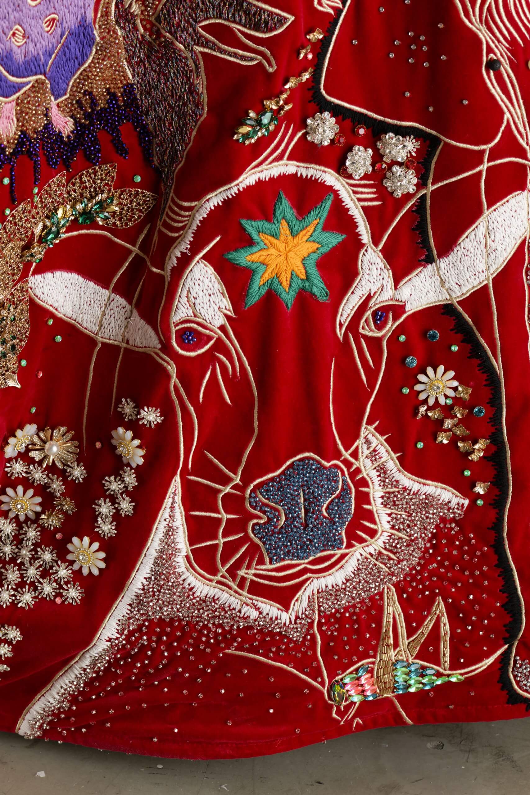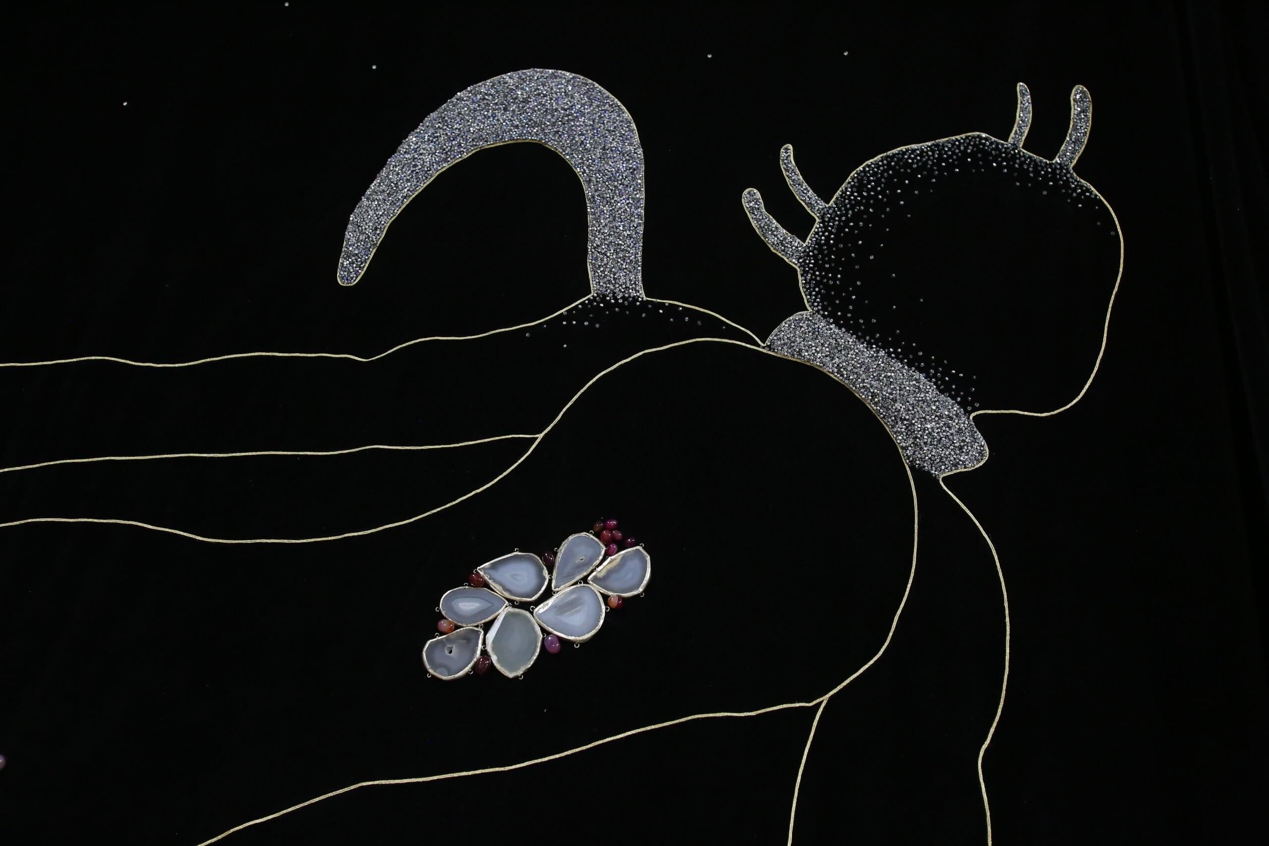 FP : Un autre détail, ce sont les animaux sur la grande cape qui fait partie de la performance et qui va être exposée à côté du Vaisseau infini. Comment as-tu créé cette cosmogonie animale ?