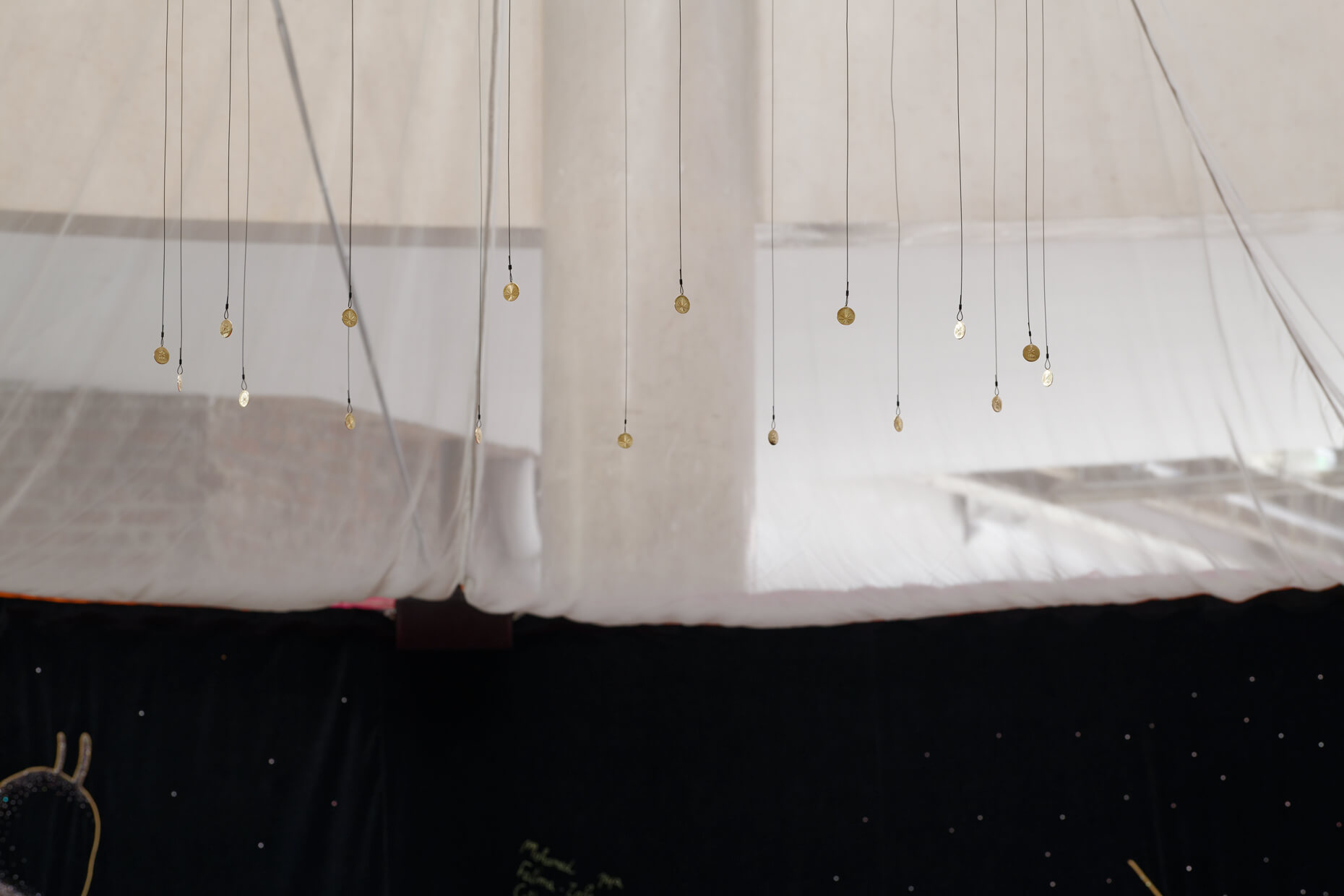 DDB : La tente n’est pas seulement un objet d’art. Je vais faire une performance d’ouverture pour marquer d’une manière symbolique la ritualisation de cet espace. Le public est important, c’est lui qui marque ce rituel. L’espace n’est pas sacralisé, c’est d’un autre ordre : il y a une forme de spiritualité, mais pas divine.